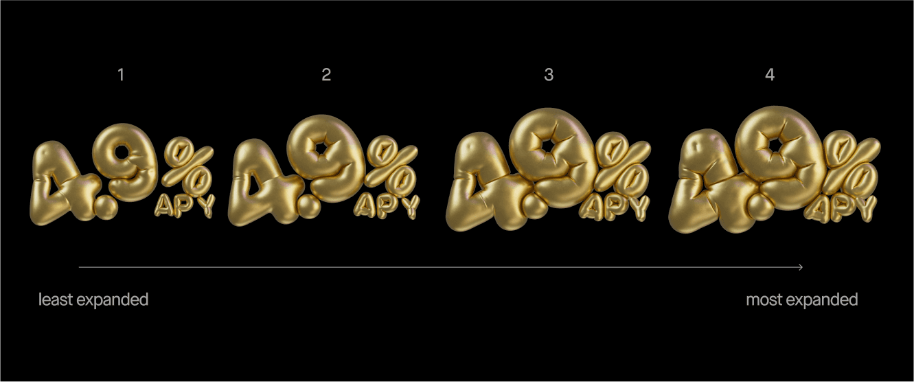 Through all of the campaign work, we ultimately wanted to make sure that we were exploring and reinforcing the key idea of expansion and scale. As we dove into the process, we kept asking ourselves: how do we make the hero number (4.9% APY) feel HUGE?